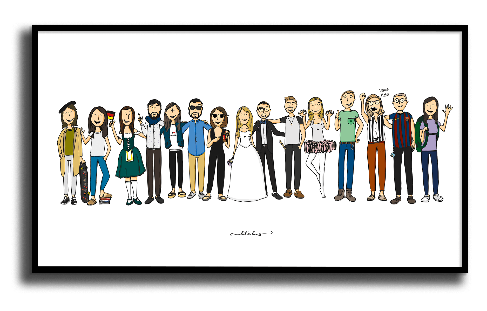 Cualquier ocasión es buena para inmortalizarte de forma original y de dibujo! Caricaturas con amigos, retratos para regalar, cuadros personalizados de tu familia con todo tipo de detalles, solo cuéntame tu idea!